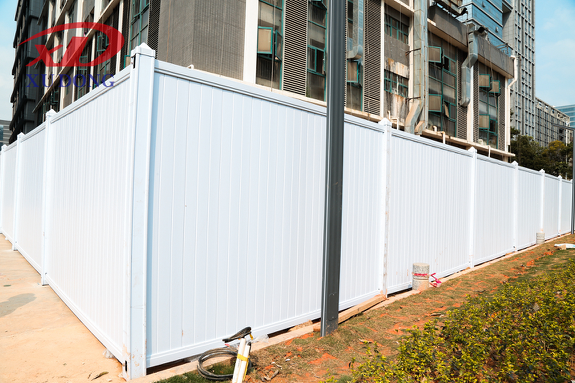 比如深圳市旭東鋼構自主研發生產的pvc圍擋,就是一款“綠色、安全、美觀、實用”的搶手貨。它由優質的PVC材料擠出成型拼裝,內腔配有鍍鋅鋼襯增強,具有足夠的強度和抗沖擊性能。它采用特種配方,使得PVC圍擋不褪色、不發黃、不開裂、不蟲蛀、不生銹、無需刷漆,經得起風吹雨打,日常維護費用很低,避免了維持保養,所以綜合成本低。如果沾染灰塵等污物,只需要用水噴洗就行了。